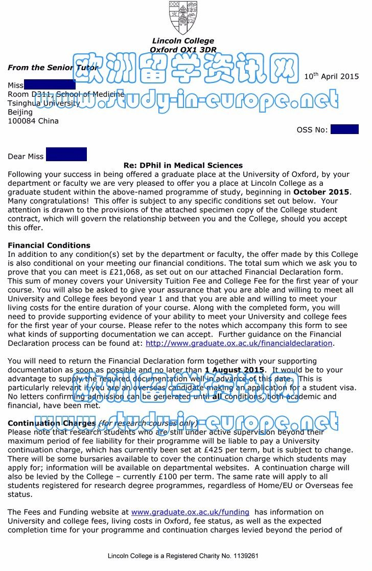 学生背景:清华大学,化学生物学专业录取院校 & 专业: 英国牛津大学医学博士项目录取,学制4年;