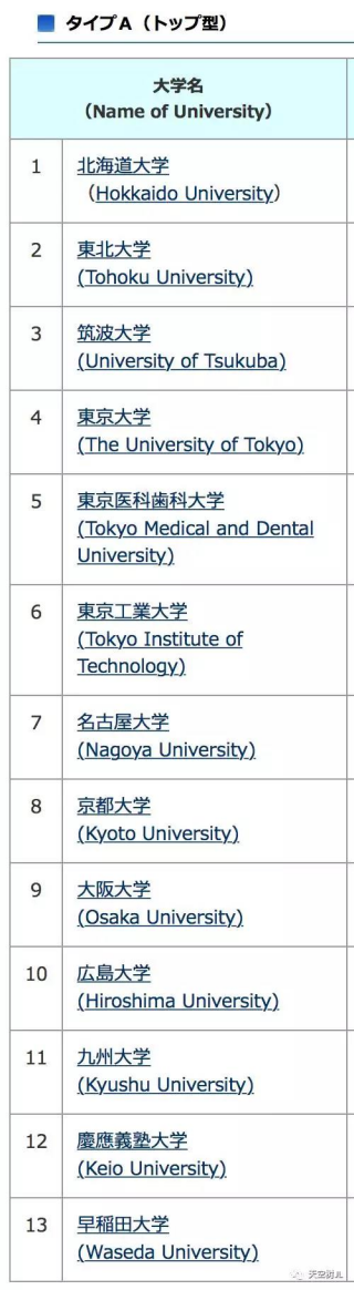 7所国立:东京大学、京都大学、大阪大学、名古屋大学、东北大学、九州大学、筑波大学