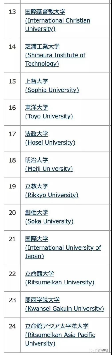 6所私立:庆应义塾大学、上智大学、早稻田大学、同志社大学、立命馆大学、明治大学